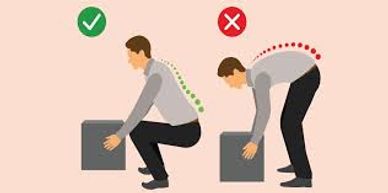 Lifting objects is one of the most common ways to injure yourself. Start by squatting down to the object with one foot slightly in front of the other. Keep your back straight, only bending at the knees and hips. Keep your head looking forward and lift the object by straightening your legs, still keeping your back straight. Hold the object close to your body. Never twist while picking something up. Only turn once you are fully upright. Keep the same idea in mind when you are putting the object back down.